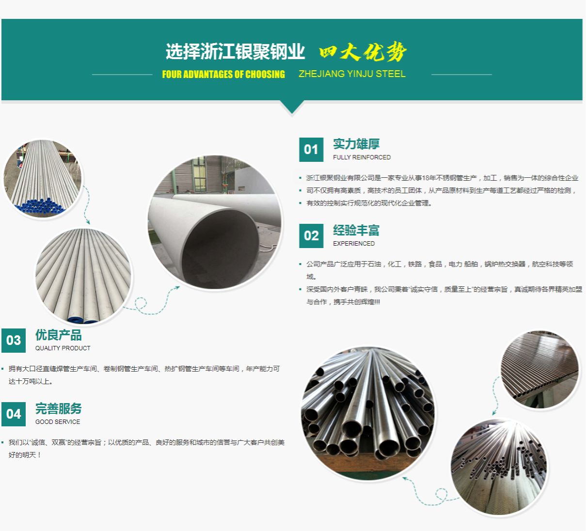 Copyright @ 浙江銀聚鋼業(yè)有限公司-不銹鋼管廠家 版權所有 | 單位地址:浙江省溫州市龍灣區(qū)永中街道 生產基地:浙江省麗水市龍泉市塔石鎮(zhèn)金崗工業(yè)園區(qū) 浙ICP備2021034082號-8